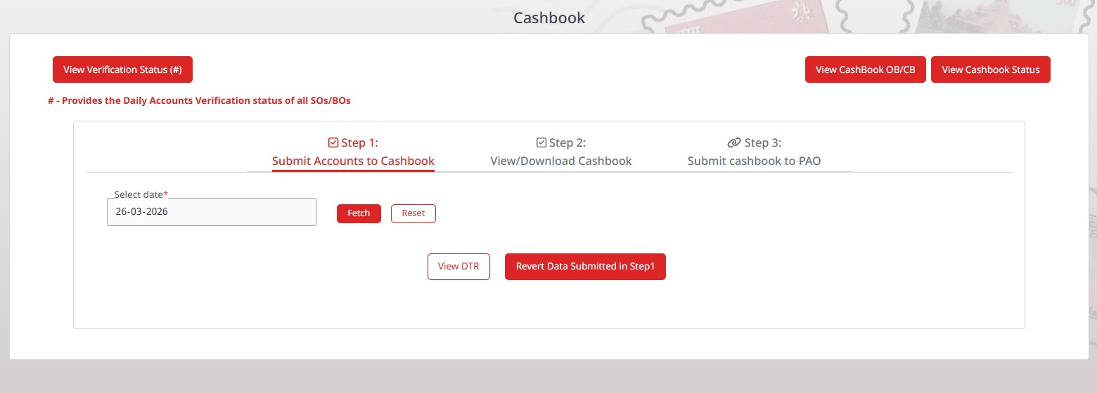 View DTR at Cash Book submission Step-1 Revert step 1 also provided in this page itself. It will be shown only if cashbook is not submitted to PAO or reverted from PAO. This is for all DDOs