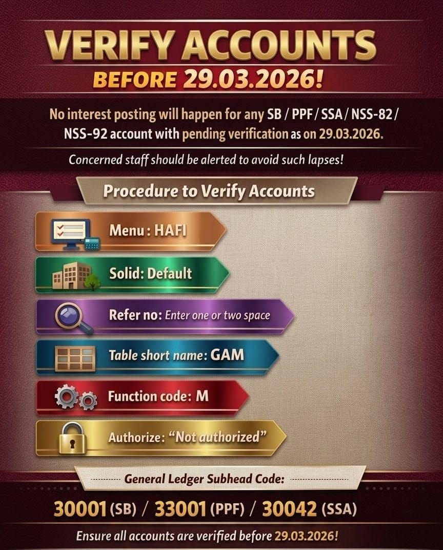 SB Order 09/2022 - Corrigendum : Execution of HACINT menu in Finacle CBS and amendments in Rule 61(3) and Appendix-XVI of POSB CBS Manual (Corrected up to 31.12.2021)